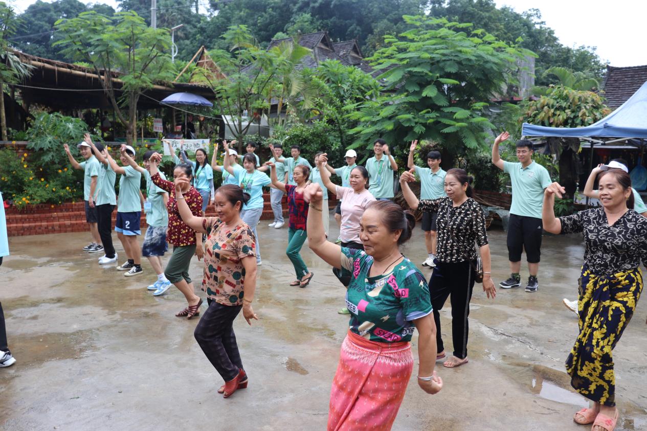 作为千年古寨,曼远村文化底蕴深厚,非遗传承丰富,实践团队向村民歌舞队学习跳舞,感受当地民俗文化。(来源:太阳集团tyc151/文:刘鸣奇/图:李童/审核:谭泽飞)