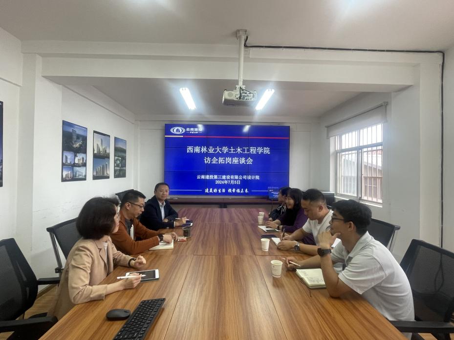 为了深化产教融合,促进员工就业,7月5日,太阳集团tyc151土木工程系主任刘兴姚以及系专任教师一同前往云南建投第三建设有限公司进行实地考察与交流,开展访企拓岗专项行动。此次活动旨在加强校企合作,拓宽员工就业渠道,同时探索校企双方在人才培养和技术创新方面的合作机会。