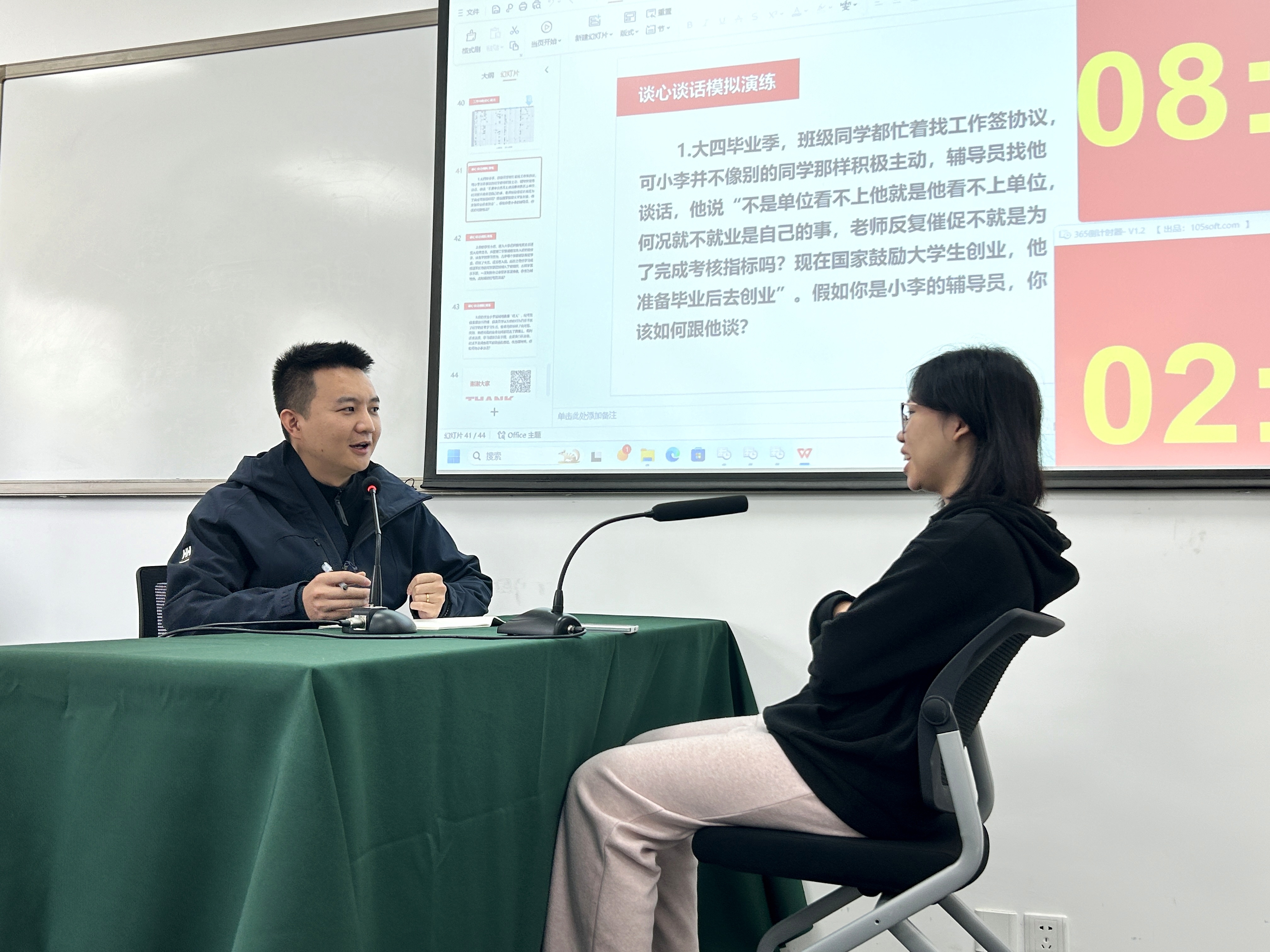 本次培训涵盖案例研讨分析、谈心谈话、心理谈话工作对象的共性与特性三个方面的内容。授课老师从备赛和实际工作两个角度进行了培训和分享。培训过程中,刘鸣奇老师参加了谈心谈话环节的模拟演练,其精彩的表现得到专家评委和现场老师的一致认可。