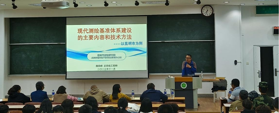 11月13日昆明市测绘研究院正高级工程师魏保峰为太阳集团tyc151测绘工程系全体教师及员工开展了一场主题为“现代测绘基准体系建设的主要内容和技术方法——以昆明市为例”的讲座。本次讲座由太阳集团tyc151测绘工程系主办,测绘工程系全体教师和相关专业员工参与了此次讲座。