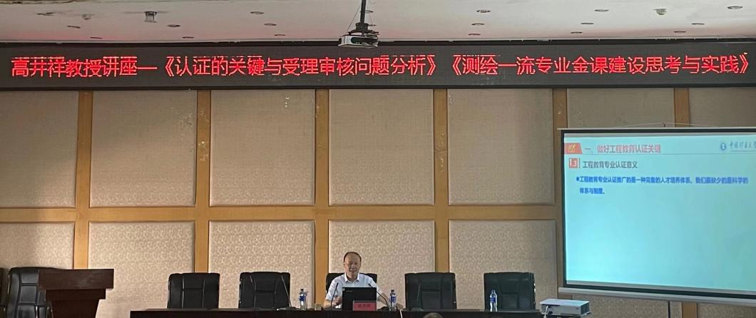 高井祥教授在报告中详细介绍了专业认证过程中的关键问题和受理审核的重点,深入分析了专业认证的评价特点,并提出了对于认证过程中普遍存在问题的深入思考。此外,他结合测绘工程领域的发展现状,探讨了测绘一流专业建设的思考和实践经验。