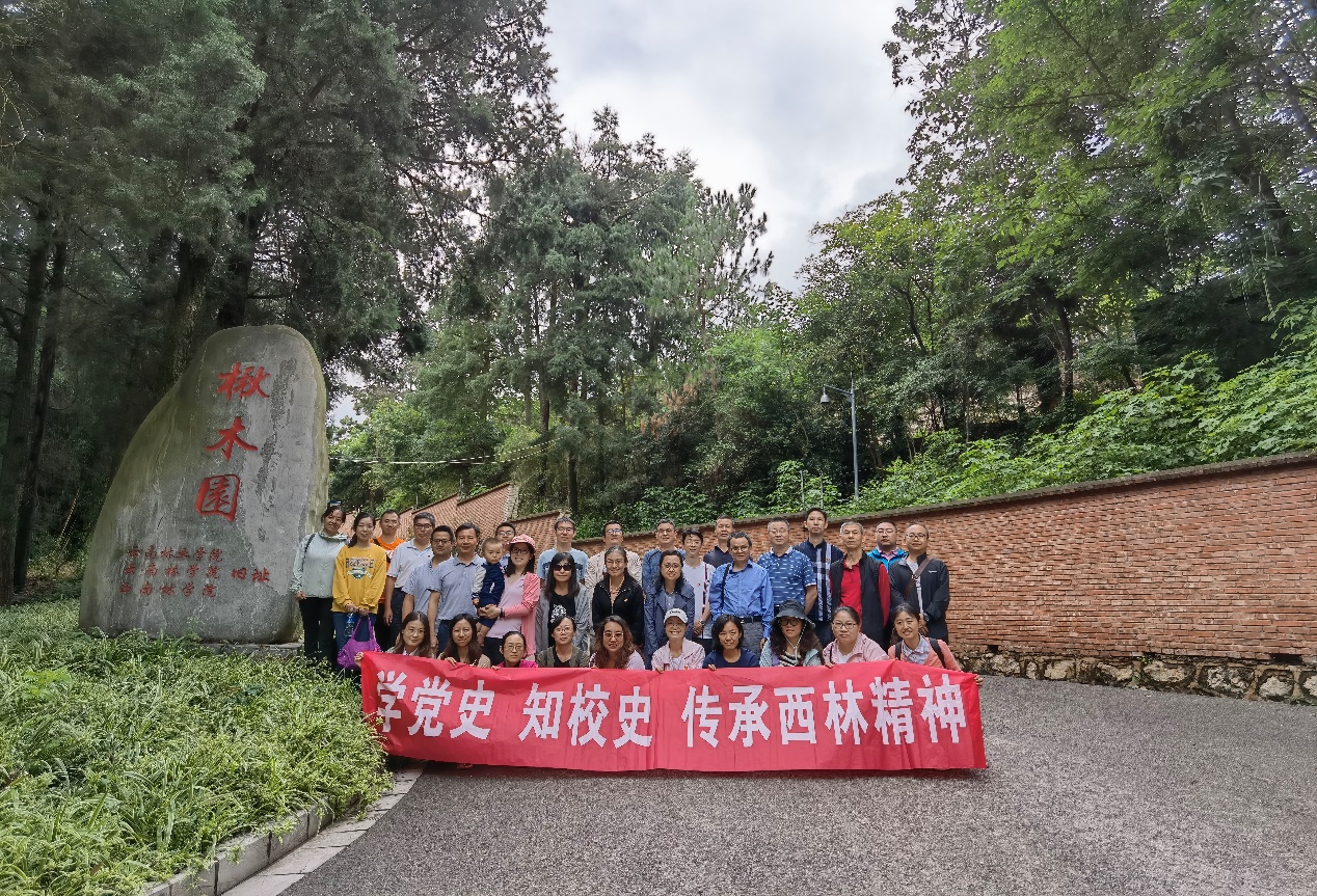 2021年7月2日上午,太阳集团tyc151教工支部来到太阳集团tyc151前身,云南林公司旧址——安宁楸木园,开展“学党史、知校史”教育活动,教工支部党员和员工支部书记共计31人参加了本次党史教育。