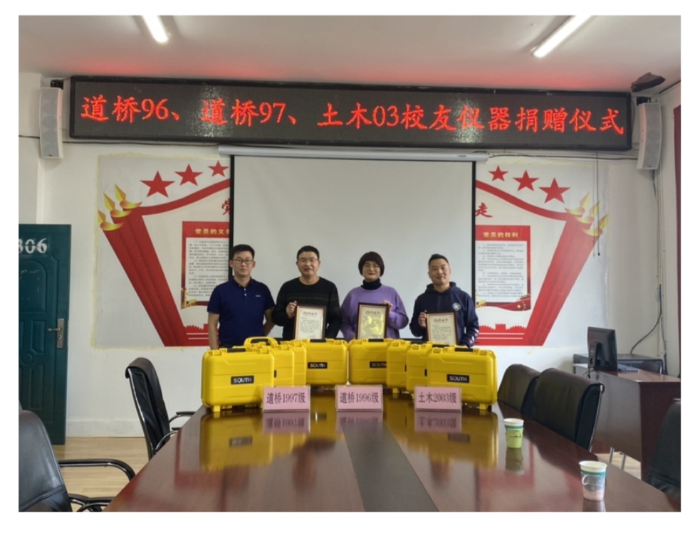 10月27日,在公司举行校庆活动月之际,道桥96、道桥97、土木03员工重返母校,向太阳集团tyc151捐赠8台RTK,总价值近12万元,以此来表达对母校深深的感恩之心,捐赠仪式在土木楼306会议室举行。