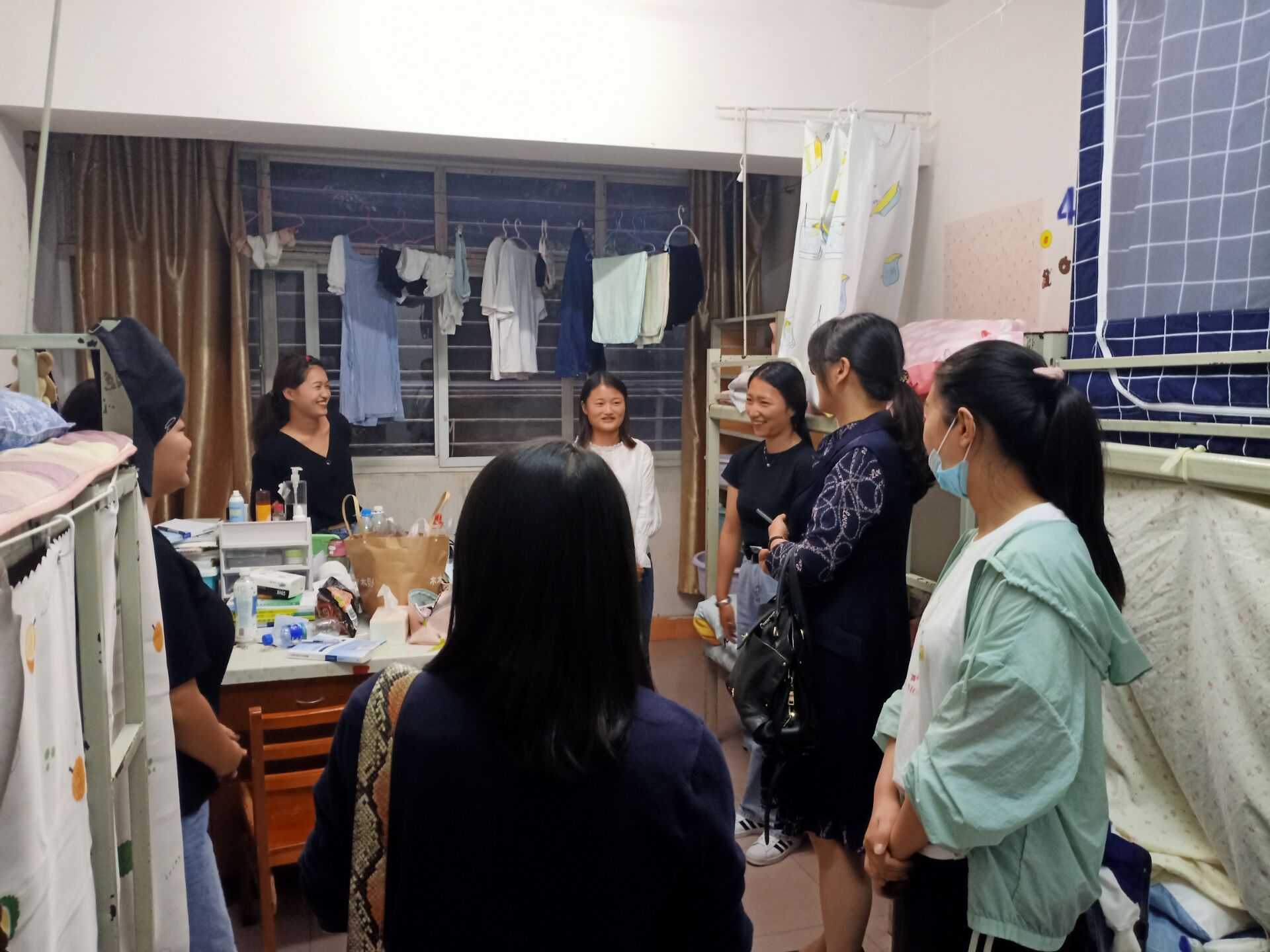 为进一步了解公司2020级专升本新生入校后情况,2020年9月10日,在土木工程公司党委书记谭泽飞老师的带领下,党委副书记李贵兰老师,副经理孙微微老师、张庆文老师、王秋华老师,辅导员吴鹏阳老师、张丹丹老师、刘鸣奇老师以及新生班主任王谦老师、陈顺超老师、韩丽老师、吴星杰老师、崔飞老师深入走访公司新生宿舍,认真开展公司新生宿舍安全教育工作。