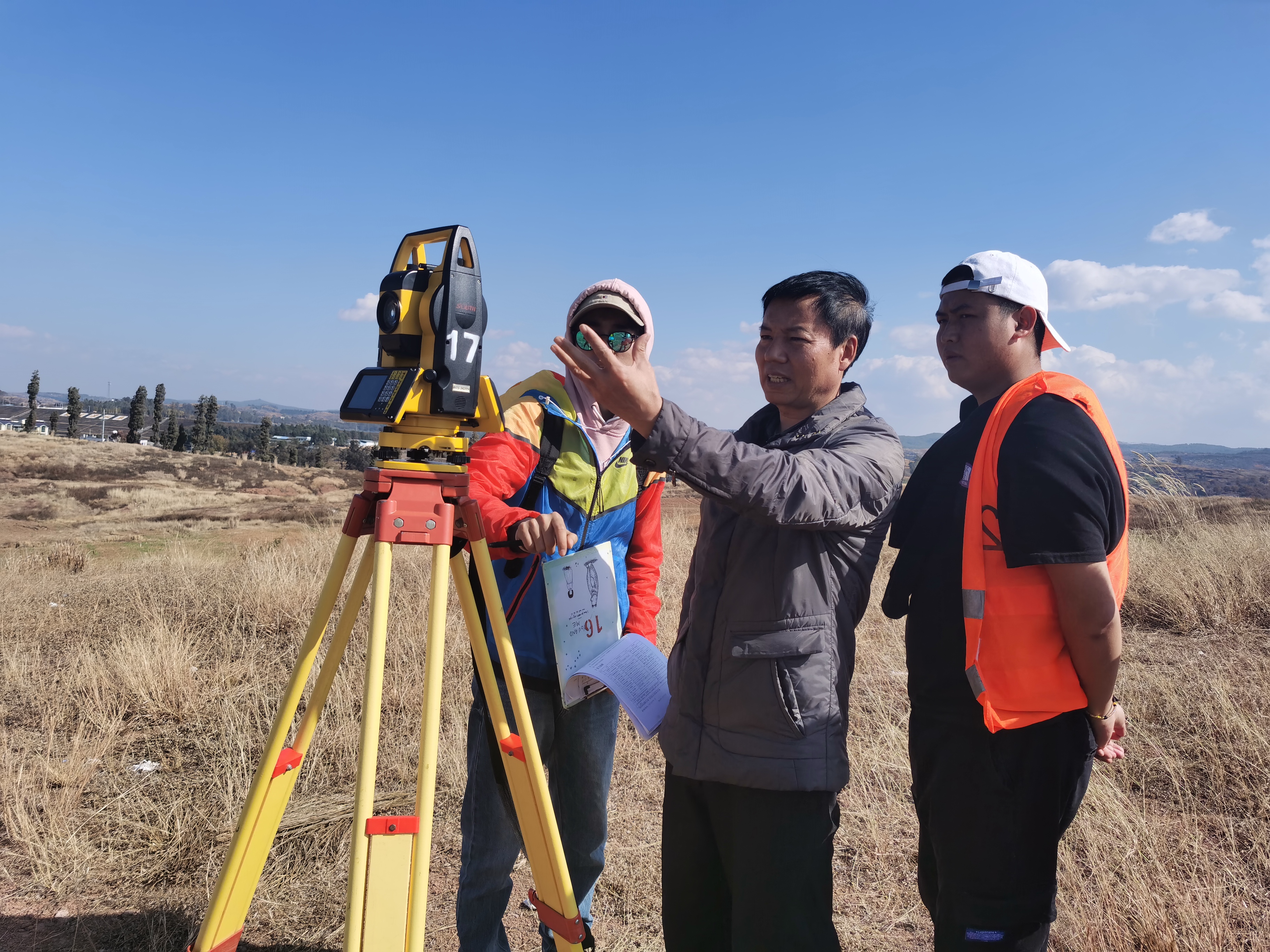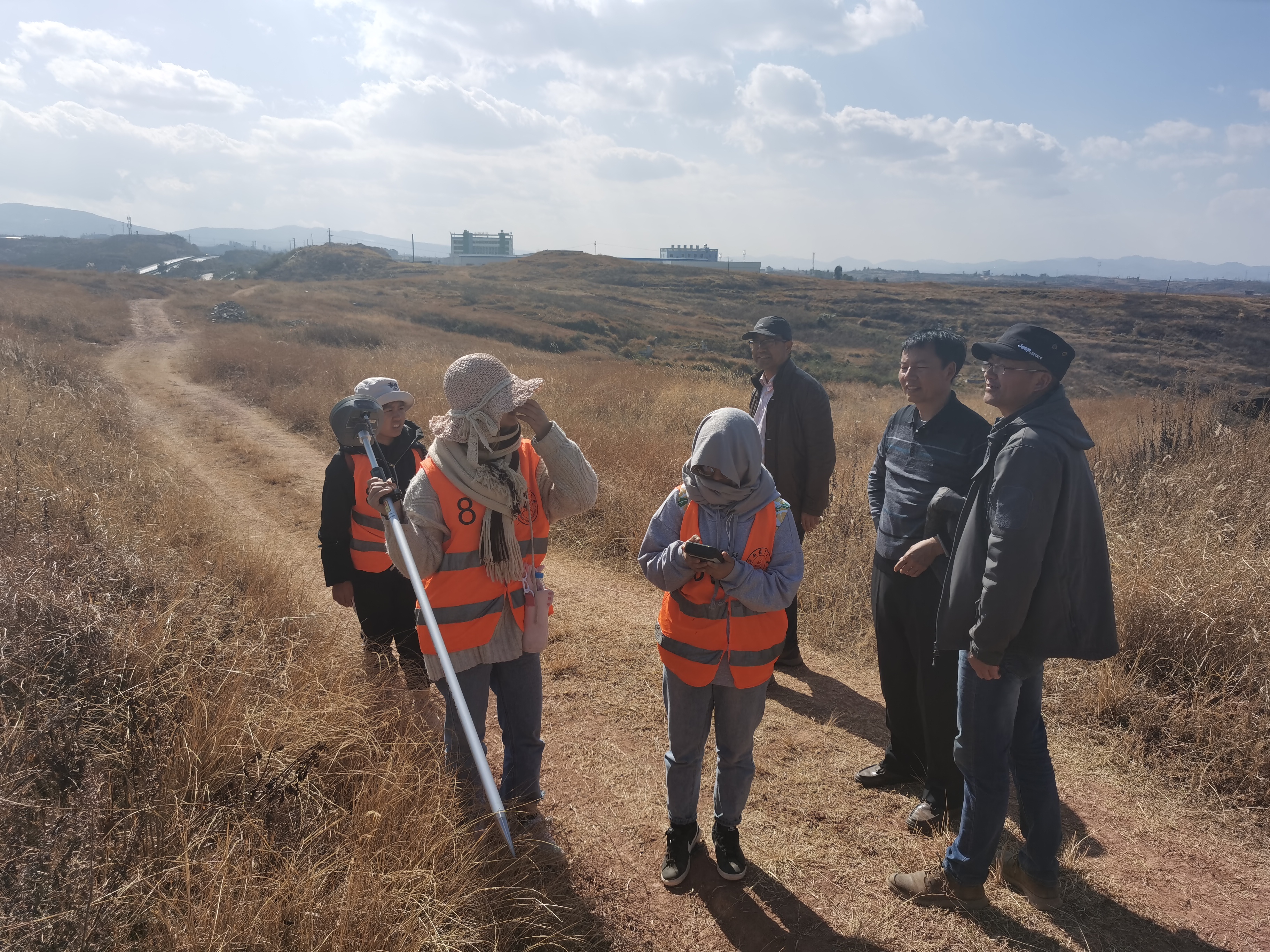 此次野外测量实践由姜华根老师带领,2019测绘工程专升本第一批49名同学参与。在石林县石林新校区姜老师对同学们的野外测量进行了认真的指导。本次测量实习5人一组,共10组。此次实习将会在石林用八天的时间来完成实地测量,要求同学们通过实地测量掌握专业的知识,同时培养同学们吃苦耐劳的精神。本次实习考察一是为了考察同学们的实习进程,二是为了鼓励同学,给予慰问和关心。