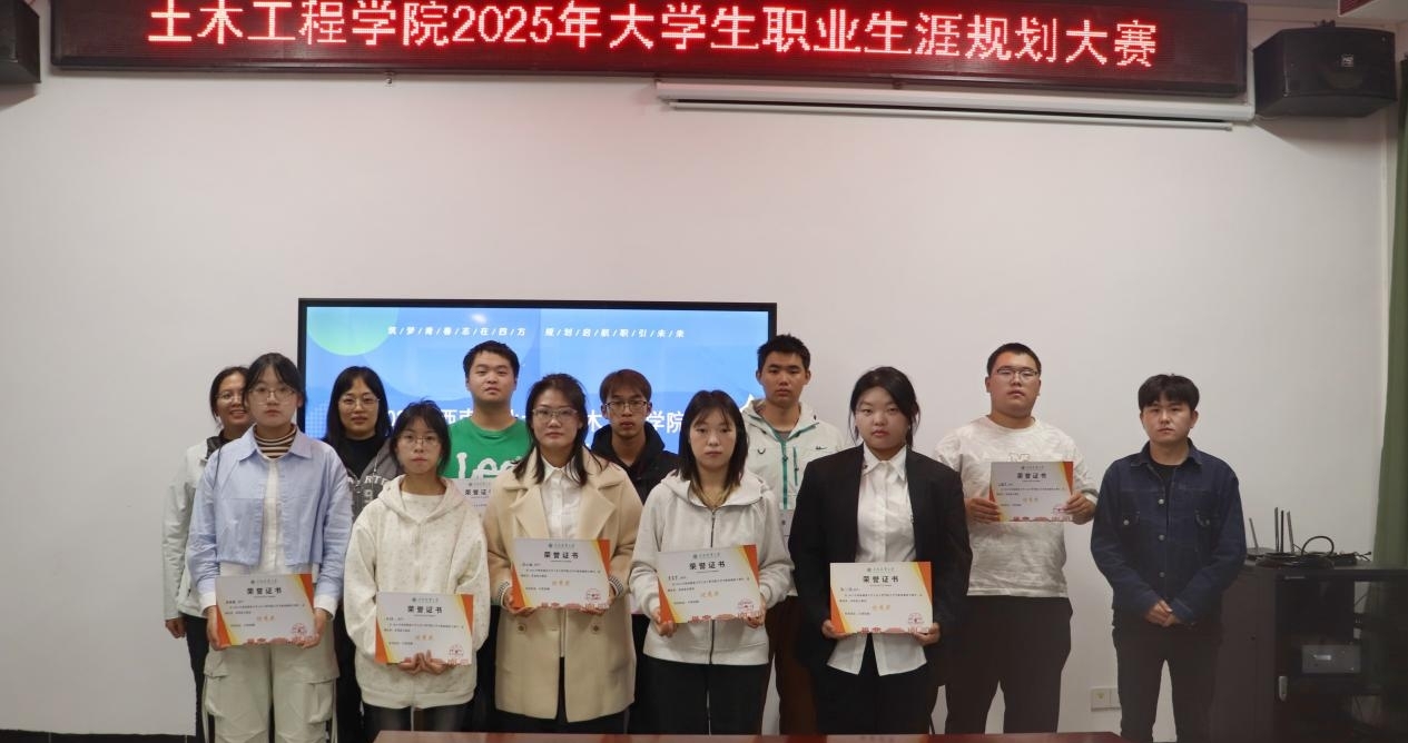 比赛现场,选手们紧扣大赛主题,结合成长与就业双赛道要求,立足土木工程专业特色,全面清晰地展示了个人职业目标、发展路径与实施策略,体现出较强的职业规划能力与良好的综合素养。评委对选手的整体表现予以充分肯定,并围绕规划内容的可行性、现场展示效果等方面提出了针对性建议。