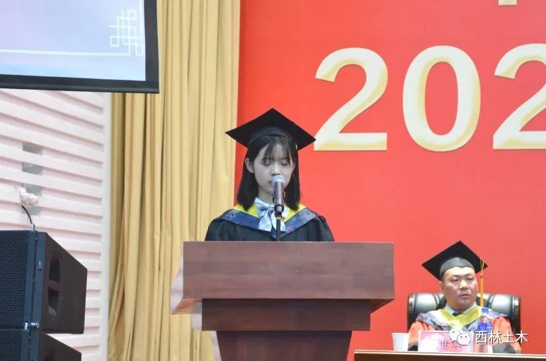 大家上午好!我是来自土木工程2019级的欧阳素莹,很荣幸作为本科毕业生代表站在这里发言。